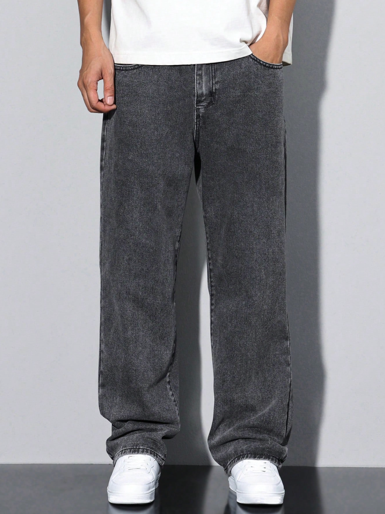 Loose Men Slant Pocket Straight Leg Jeans