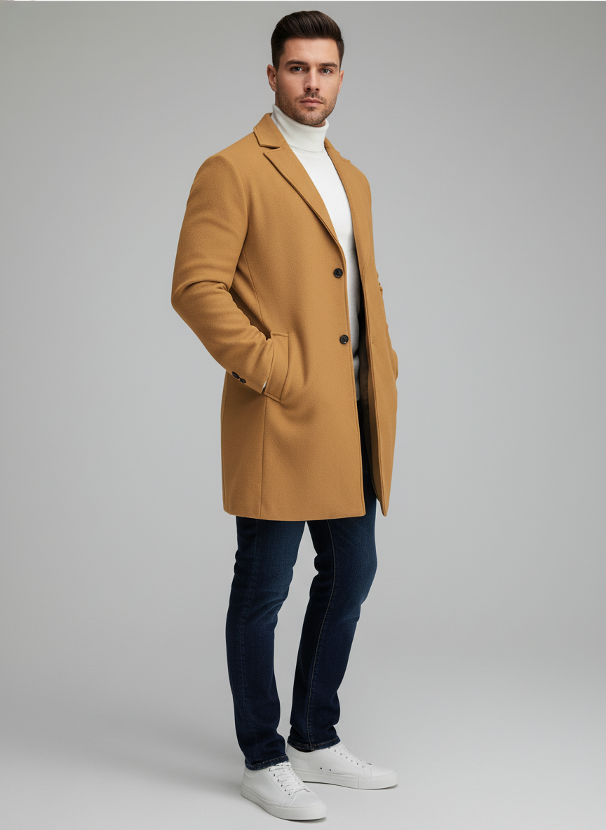 Men’s Double-Breasted Long Coat